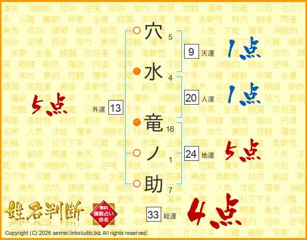 穴水竜ノ助さんの総運は33画の4点!