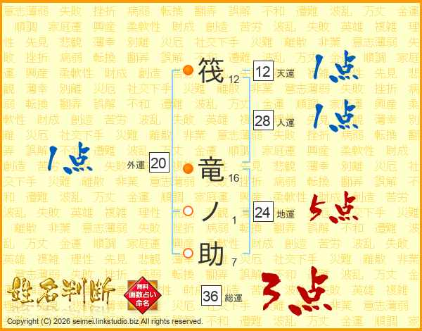 筏竜ノ助さんの天運は12画の1点!