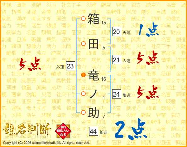 箱(15画)田(5画) 竜(16画)ノ(1画)助(7画)
