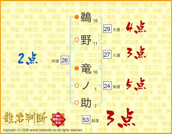 鵜野竜ノ助さんの総運は53画の3点!