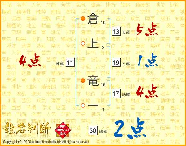 倉上竜一さんの総運は30画の2点!