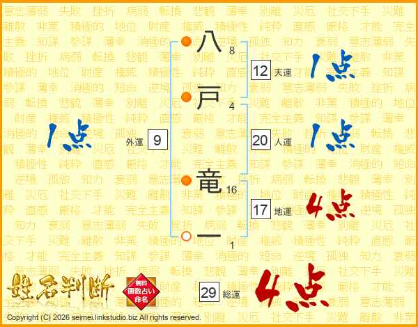 八戸竜一さんの総運は29画の4点!