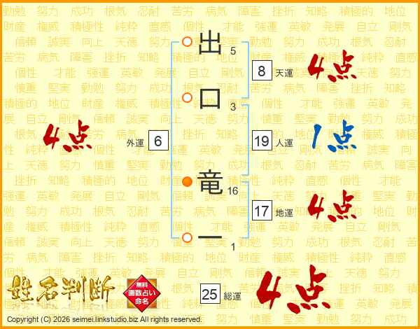 出口竜一さんの地運は17画の4点!