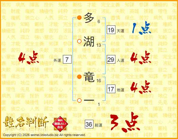多湖竜一さんの人運は29画の4点!