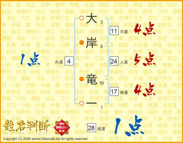 大岸竜一さんの天運は11画の4点!
