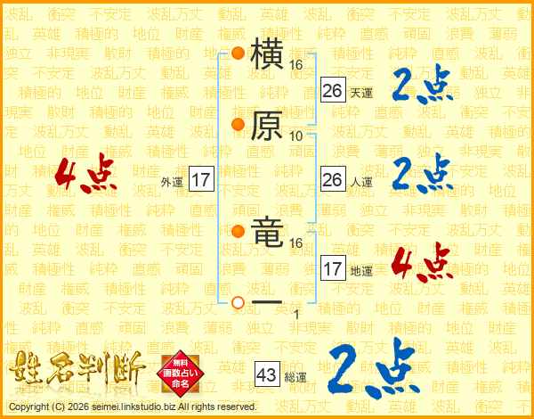 横原竜一さんの天運は26画の2点!