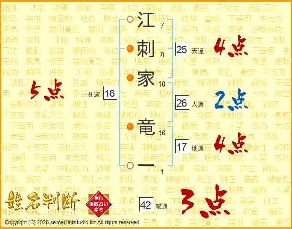 江(7画)刺(8画)家(10画) 竜(16画)一(1画)