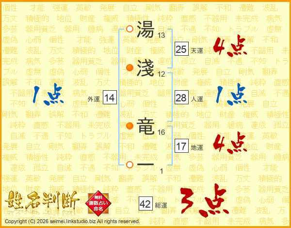 湯淺竜一さんの天運は25画の4点!