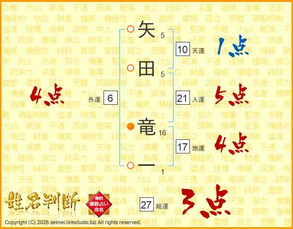 矢田竜一さんの総運は27画の3点!