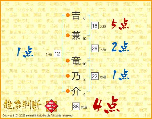 吉兼竜乃介さんの人運は26画の2点!