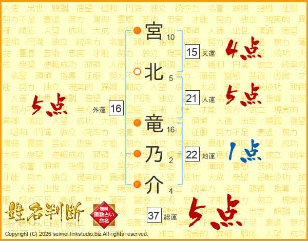 宮北竜乃介さんの総運は37画の5点!