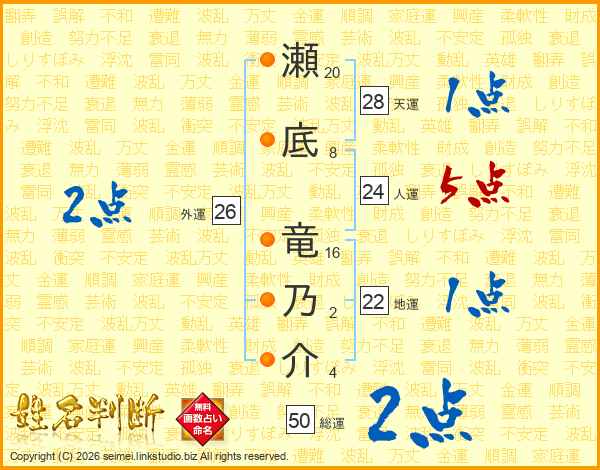 瀬底竜乃介さんの外運は26画の2点!