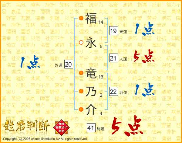 福(14画)永(5画) 竜(16画)乃(2画)介(4画)
