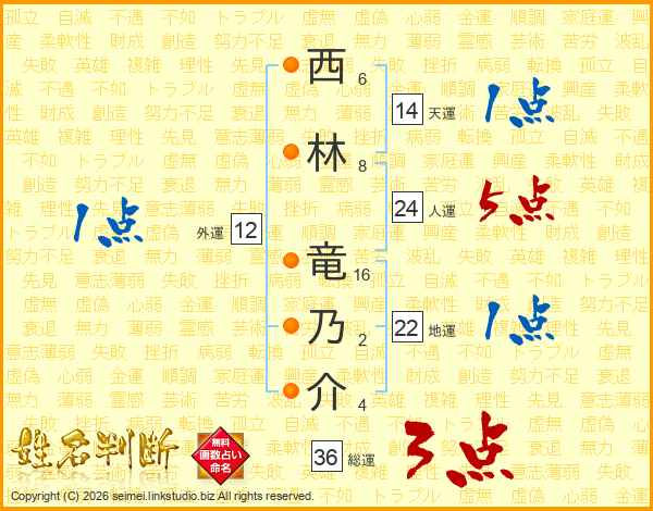 西林竜乃介さんの総運は36画の3点!