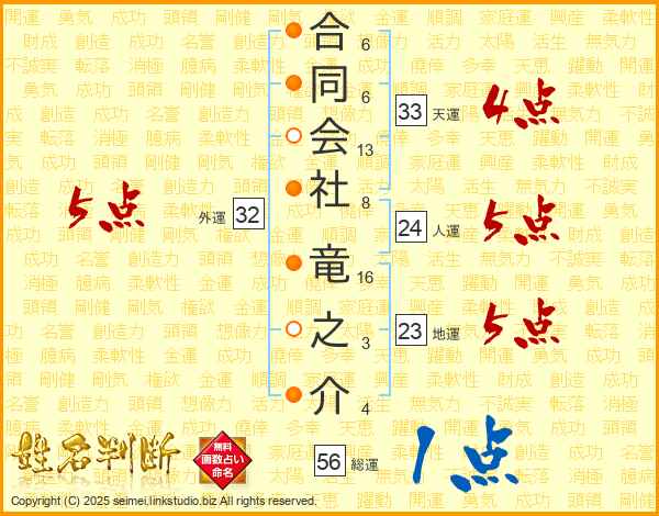 合(6画)同(6画)会(13画)社(8画) 竜(16画)之(3画)介(4画)