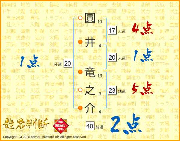 圓(13画)井(4画) 竜(16画)之(3画)介(4画)