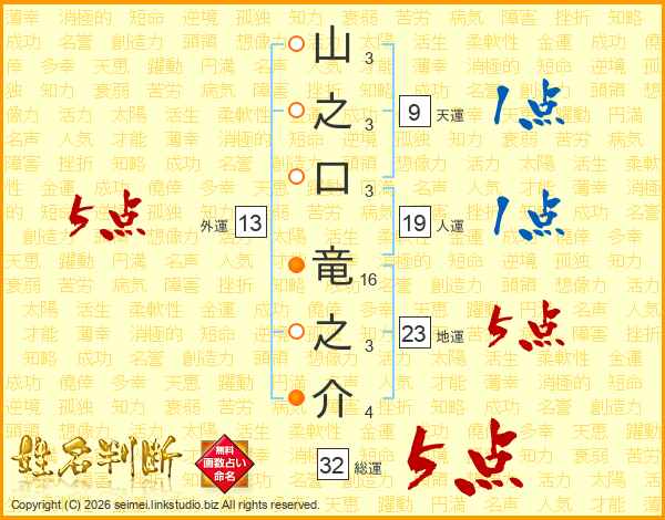 山(3画)之(3画)口(3画) 竜(16画)之(3画)介(4画)