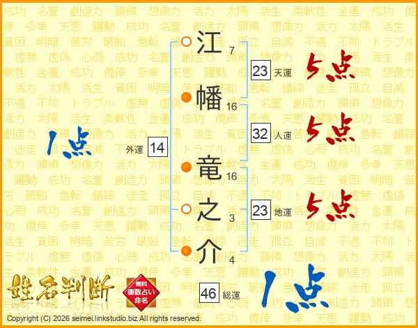江(7画)幡(16画) 竜(16画)之(3画)介(4画)