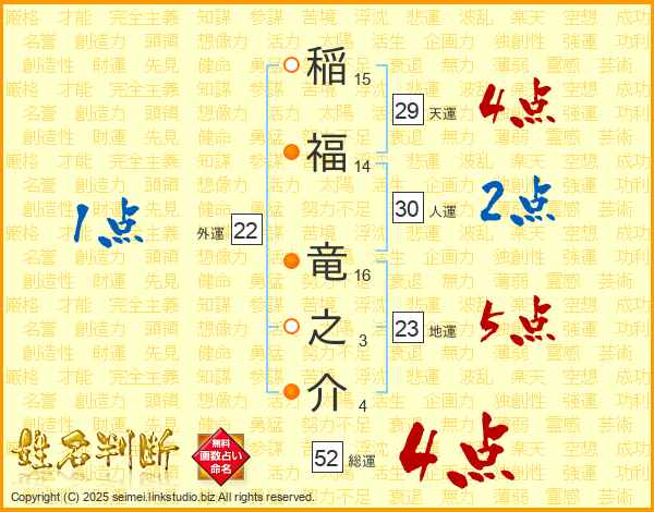 稲福竜之介さんの総運は52画の4点!
