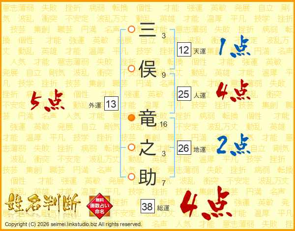 三俣竜之助さんの総運は38画の4点!