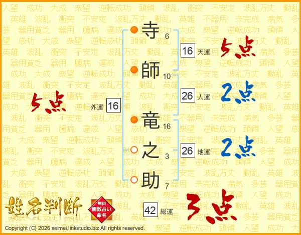 寺(6画)師(10画) 竜(16画)之(3画)助(7画)