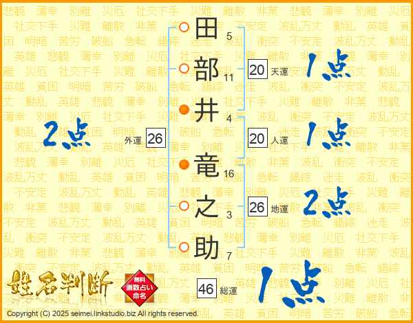 田(5画)部(11画)井(4画) 竜(16画)之(3画)助(7画)