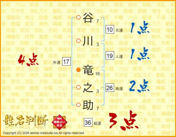 谷川竜之助さんの地運は26画の2点!