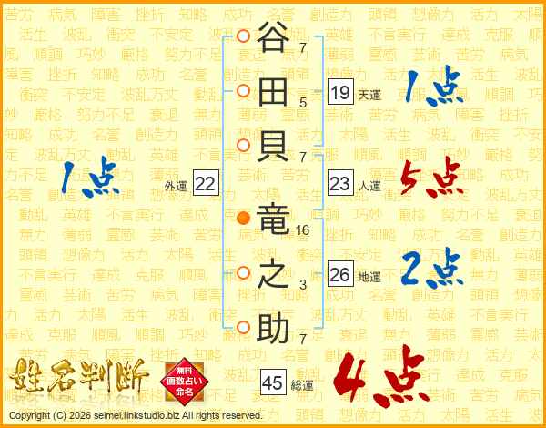 谷田貝竜之助さんの総運は45画の4点!