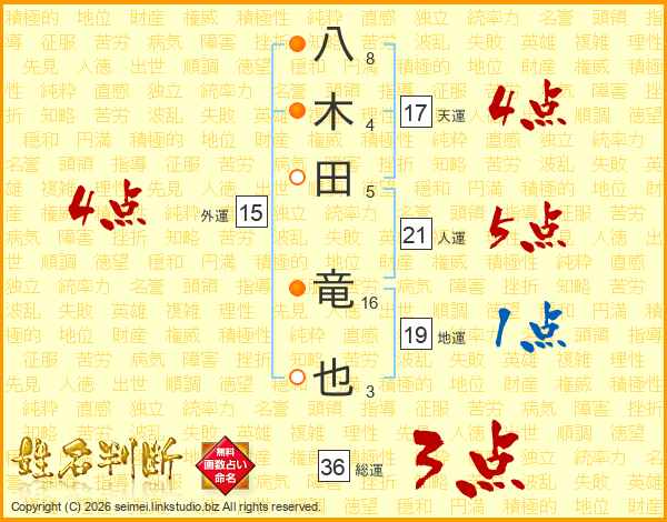 八木田竜也さんの天運は17画の4点!