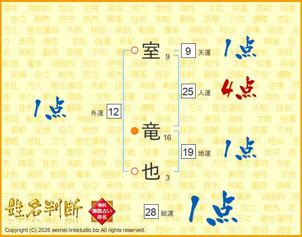 室竜也さんの総運は28画の1点!