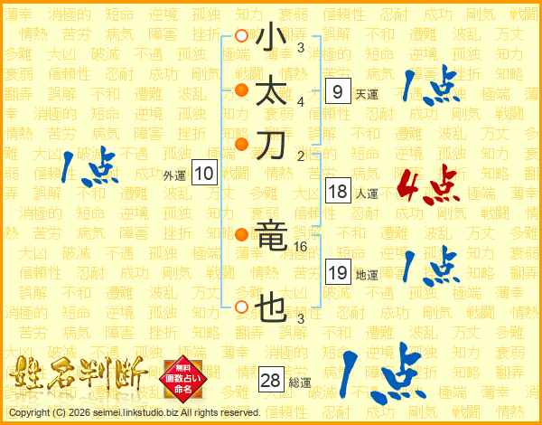 小太刀竜也さんの総運は28画の1点!
