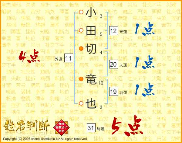 小田切竜也さんの総運は31画の5点!