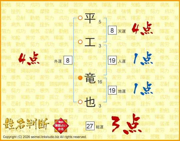 平工竜也さんの総運は27画の3点!