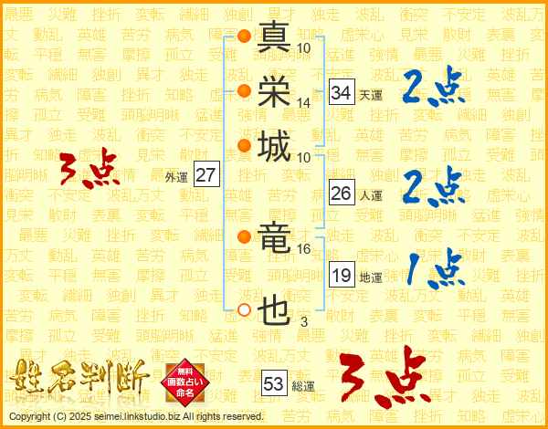 真栄城竜也さんの総運は53画の3点!