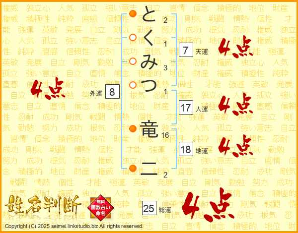 と(2画)く(1画)み(3画)つ(1画) 竜(16画)二(2画)