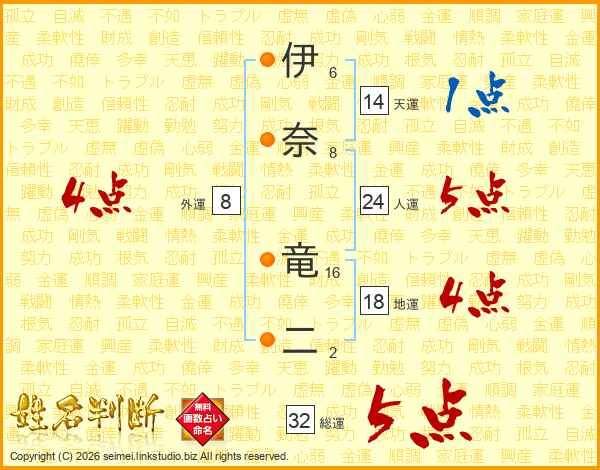 伊奈竜二さんの総運は32画の5点!