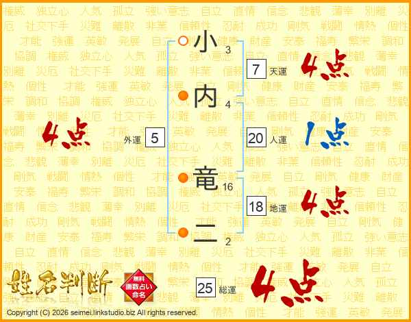 小内竜二さんの総運は25画の4点!