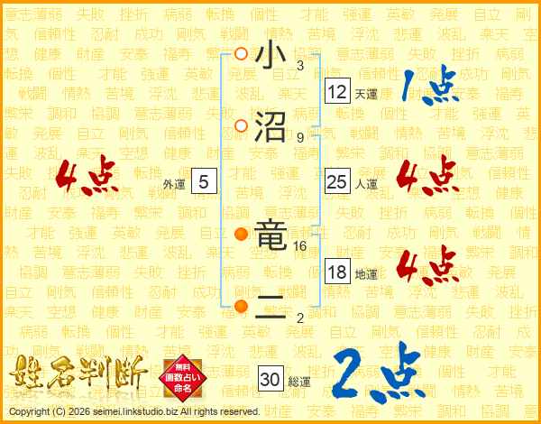 小沼竜二さんの人運は25画の4点!