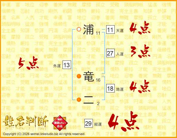 浦竜二さんの天運は11画の4点!