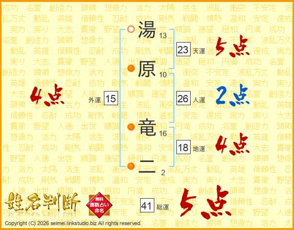湯原竜二さんの総運は41画の5点!