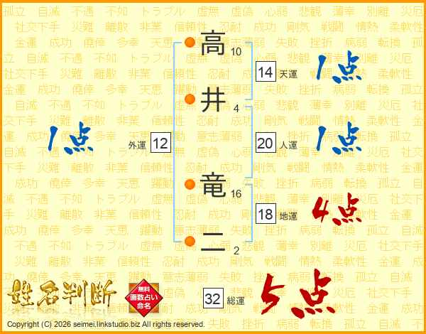 高井竜二さんの総運は32画の5点!