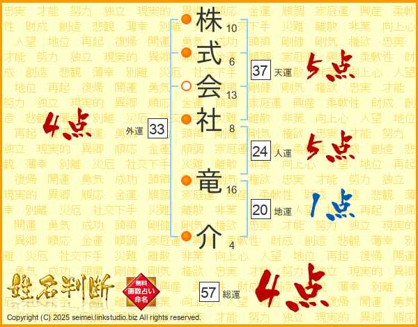 株(10画)式(6画)会(13画)社(8画) 竜(16画)介(4画)