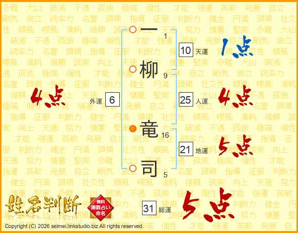 一柳竜司さんの総運は31画の5点!
