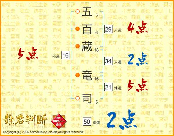 五百蔵竜司さんの天運は29画の4点!