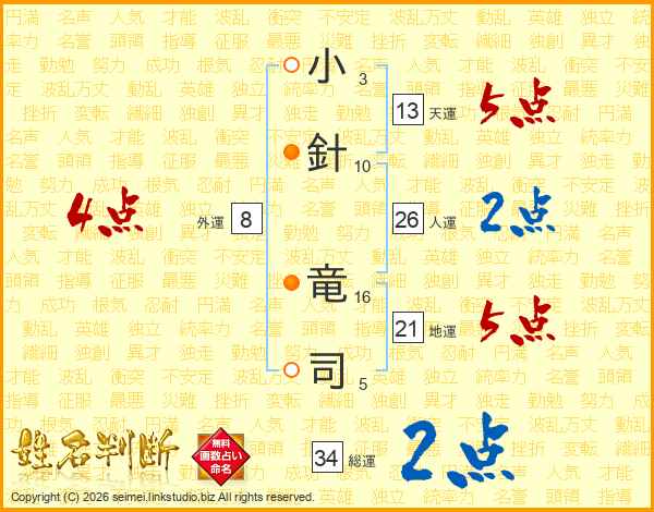 小針竜司さんの総運は34画の2点!