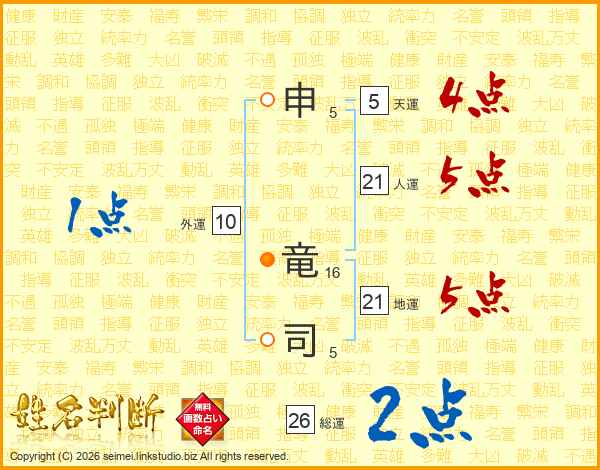 申竜司さんの総運は26画の2点!