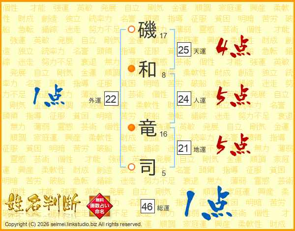 磯和竜司さんの総運は46画の1点!