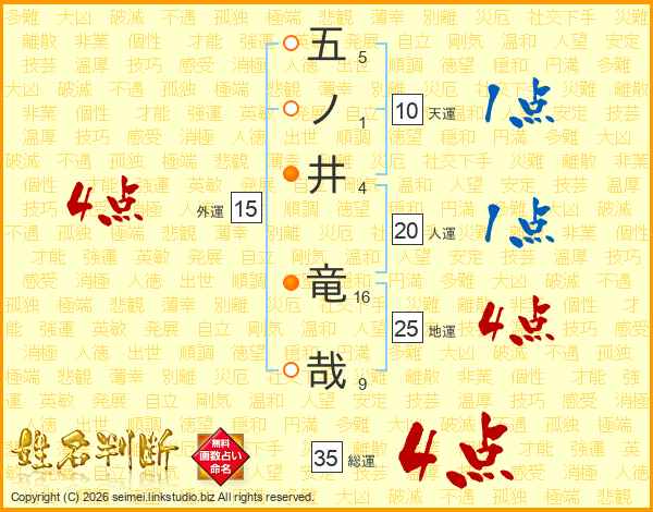 五ノ井竜哉さんの総運は35画の4点!