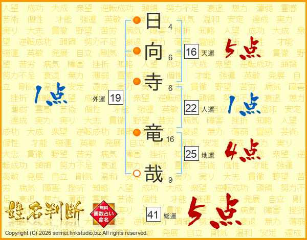 日向寺竜哉さんの総運は41画の5点!