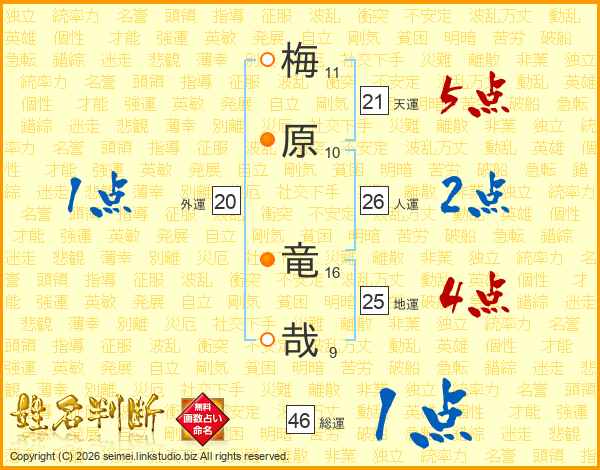 梅原竜哉さんの天運は21画の5点!